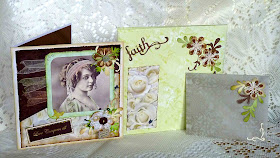 I have had such fun making this card. I wasn't sure how to approach my next project, although I knew I wanted to make something that I could put some money in as a wedding present for Matt and Sam next week. Having found some inspiration through the challenge blogs I set about gathering the things I would need. It took me a while to choose the image, which is from a pack by Debbie Moore. The layout, colours and recipe for elements were from challenge sites (see list below). The backing papers are from an Old World mat stack and the rose are a HOTP pack called Blossoms & Buds. The two flowers I have made using lace, buttons, punches and the cricut. I couldn't find the right coloured ribbons in my collection so I cut three pieces of cream organza and coloured two pieces using cosmic shimmer mist and tattered angels mist, I used these on the leaves and tiny butterfly too. I have distressed edges and used Stickles and Cosmic Shimmer Twinkles