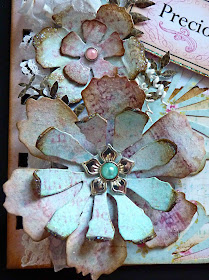 For this particular challenge though I only need to show you this part, as it's the chipped enamel technique that this shows with the letter M. I have a tin of metal items from We R Memory Keepers and this was an ideal piece to experiment on. If you would like to know how to do it, turn to page 44 of The Compendium of Curiosities, Tim's book, it's a great one to try, so simple yet so effective to create some dimension.